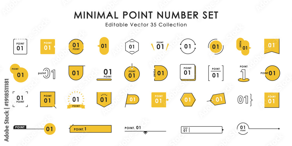 数字ポイント見出しセット ミニマルデザイン(インフォグラフィック・ステップUI・ベクター) #1918511181