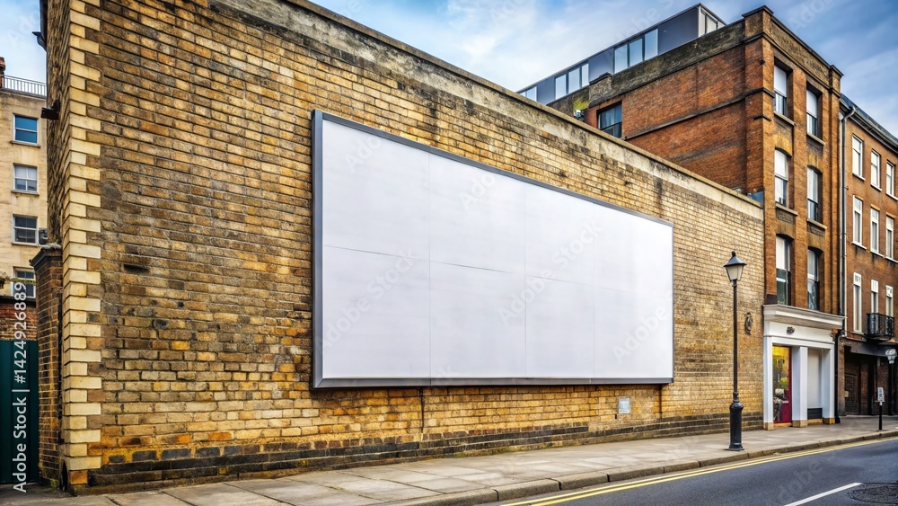 Ultra Realistic Wide-Angle Photo: Large White Billboard on London Brick Wall #1424926889