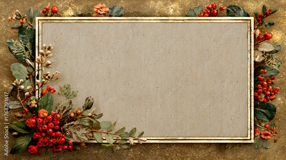 un marco vacio con espacio de copia creativo para diseño navideño con ornamentos y adornos de navidad para tarjeta o diseño #1768791617