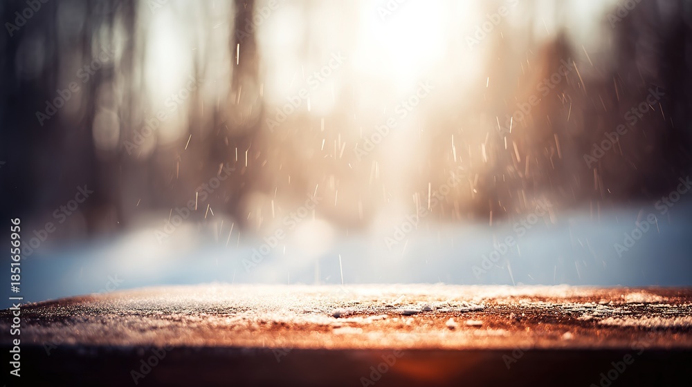 unanimity. Winter wooden surface with gentle snowfall, cold seasonal atmosphere. travel magazines, destination branding, designed for outdoor magazines and nature guides, inspires travel planning. #1851656956