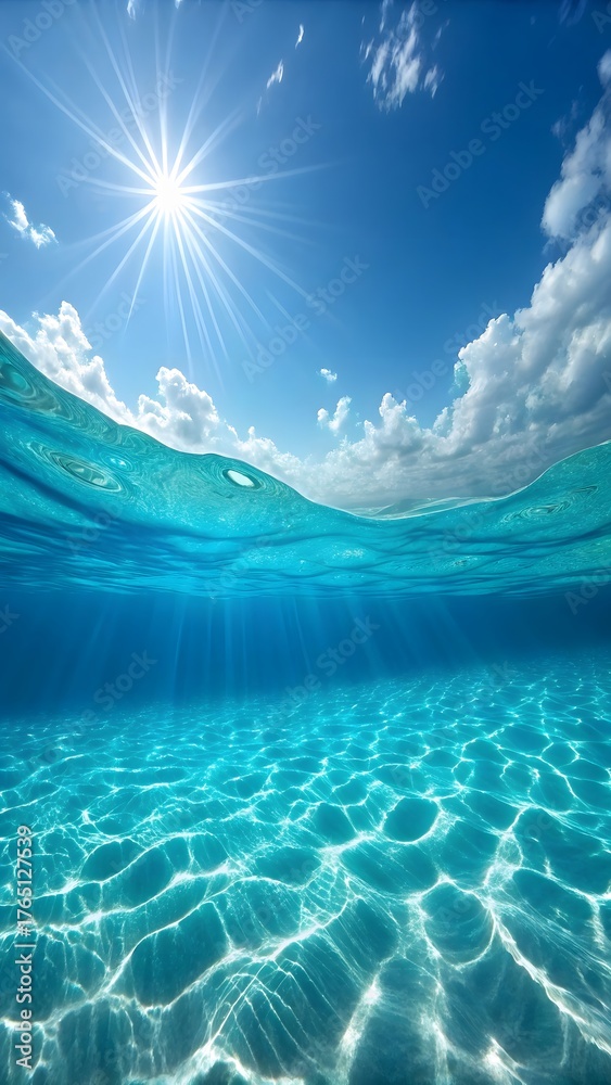 Underwater ocean scene with sun rays and blue sky for background and wallpaper use image #1765127539