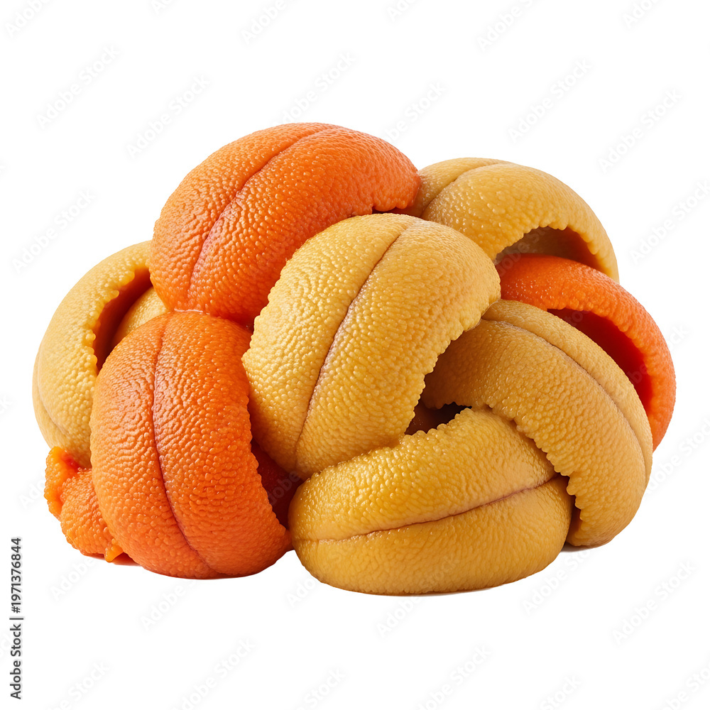 Uni Delights: A close-up view unveils an exquisite assortment of vibrant sea urchin roe, showcasing their unique textures and succulent appeal. #1971376844