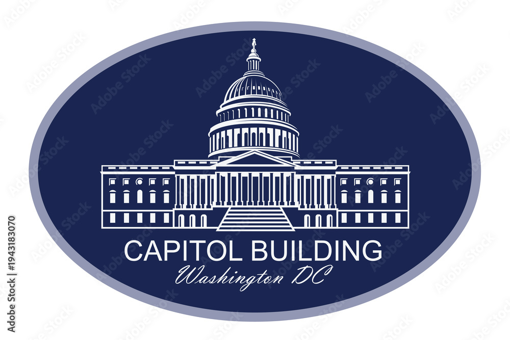 United States Capitol building icon in Washington DC isolated on blue backgrpound #1943183070