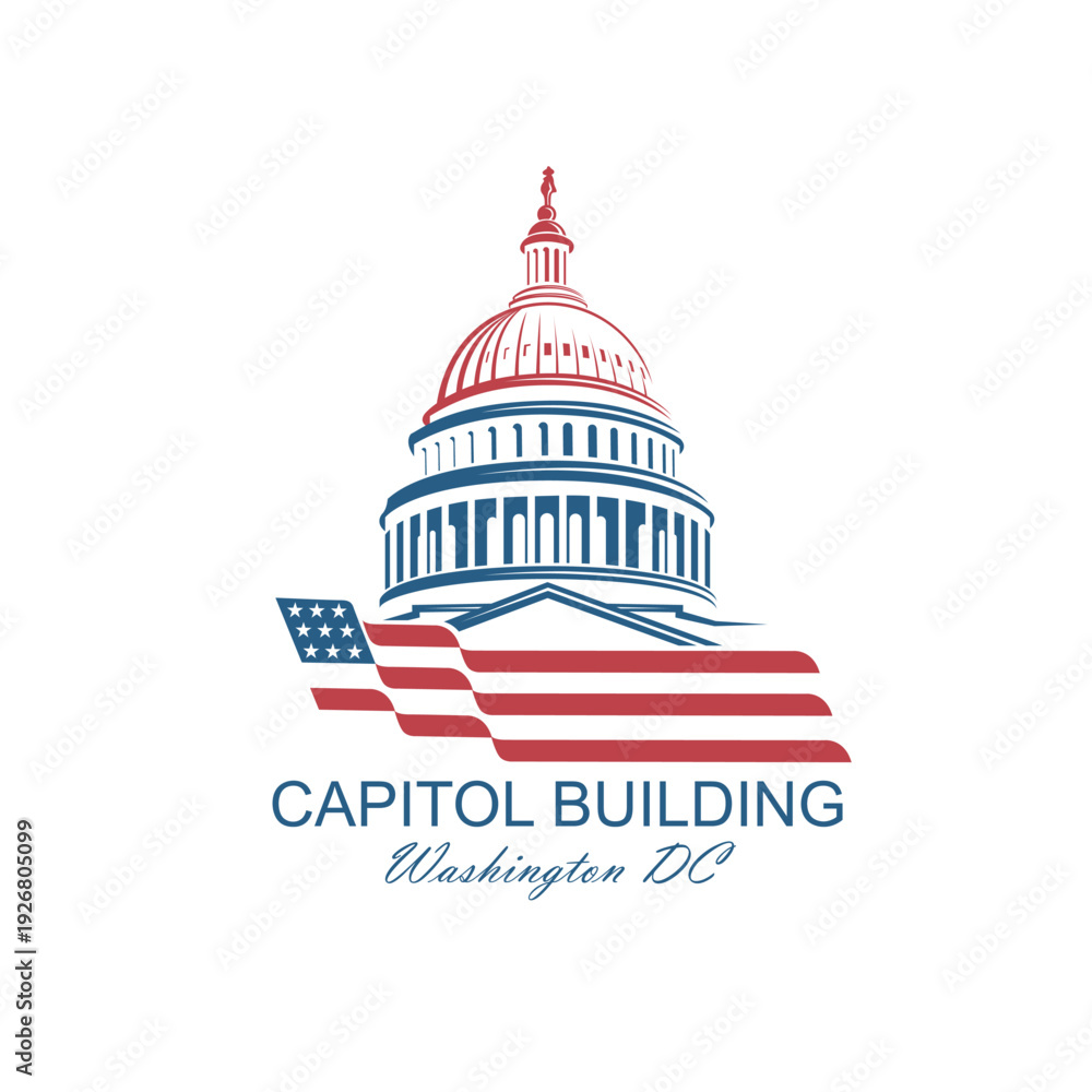 United States Capitol building icon in Washington DC isolated on white backgrpound #1926805099