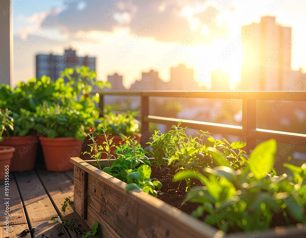 Urban Gardening auf Balkon mit Gemüse und Kräutern in Pflanzkästen #1915155655