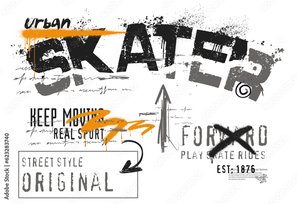 urban skater graffiti,T shirt graphics slogan design, art graffiti style slogan, Urban typography street art graffiti slogan print with spray splash effect for t shirt #623283740