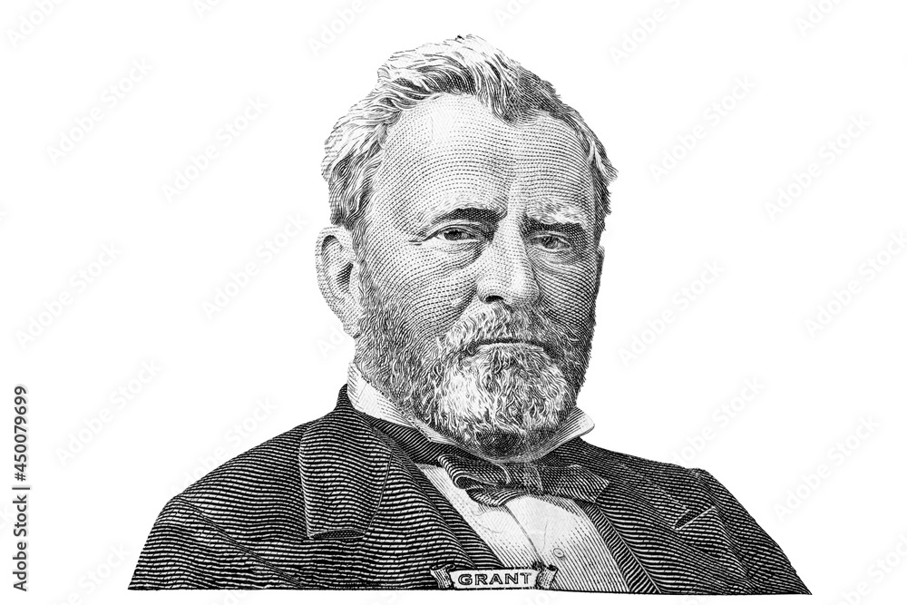 US president Ulysses Grant portrait on 50 dollar bill, United States money closeup #450079699