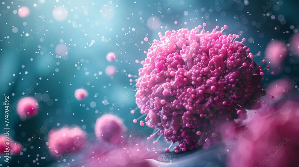 Uterus or uterine cancer medical concept as cancerous cells in a female body attacking the reproductive system as ovaries #774704092