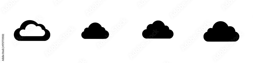 Various cloud shapes illustrated with simple black silhouettes over a white background in a minimalist style #1757731502