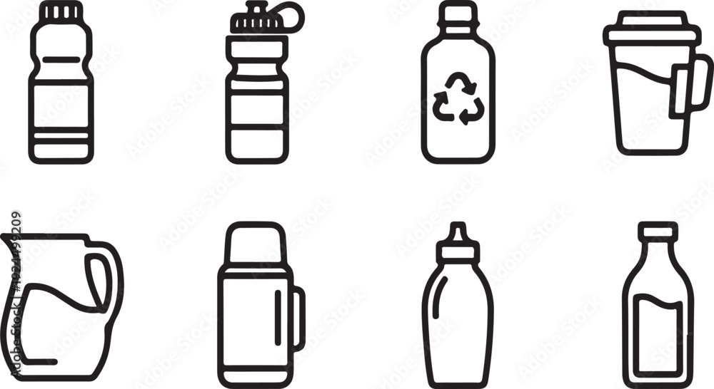 Various containers and their recycling symbols for eco-friendly waste management Vector #1924499209