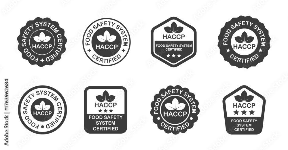 Various haccp food safety system certified badge designs in black and white #1763962684