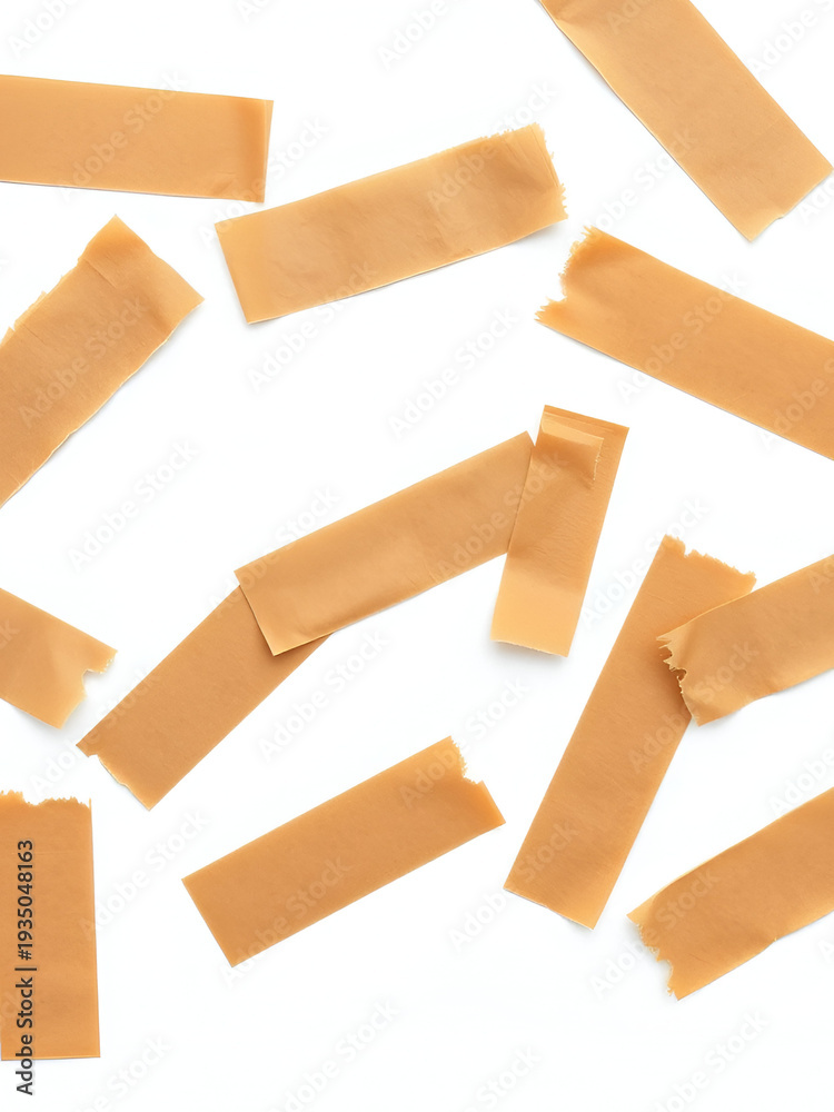 Various pieces of torn brown masking tape isolated on a white background, useful for design elements #1935048163