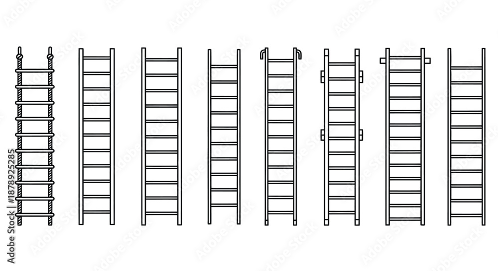 Various styles of ladders arranged in a row Vector #1878925285