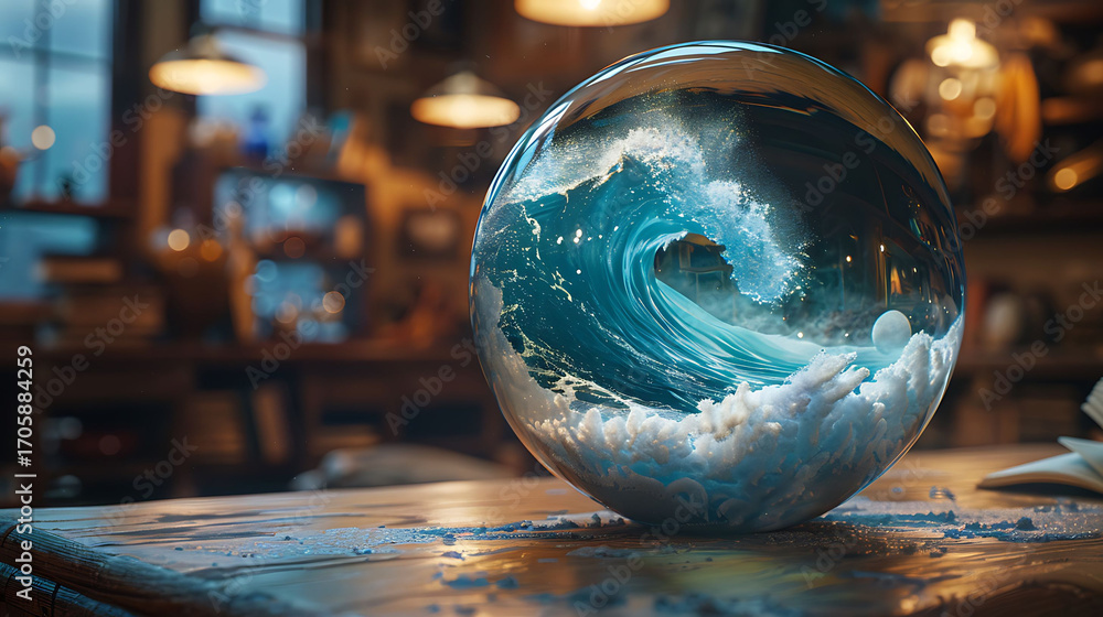 Vast Ocean Scene Within a Crystal Ball on a Wizard’s Staff #1705884259