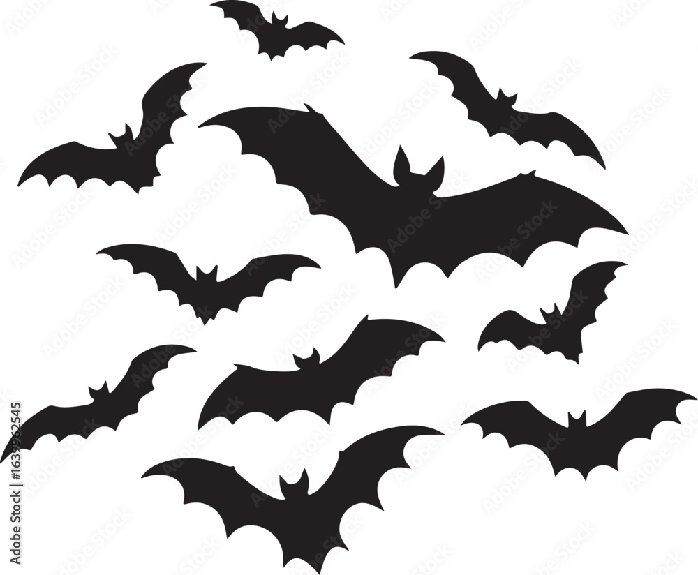 Vector art of bats silhouettes flying isolated on white background, vector illustration design #1639962545