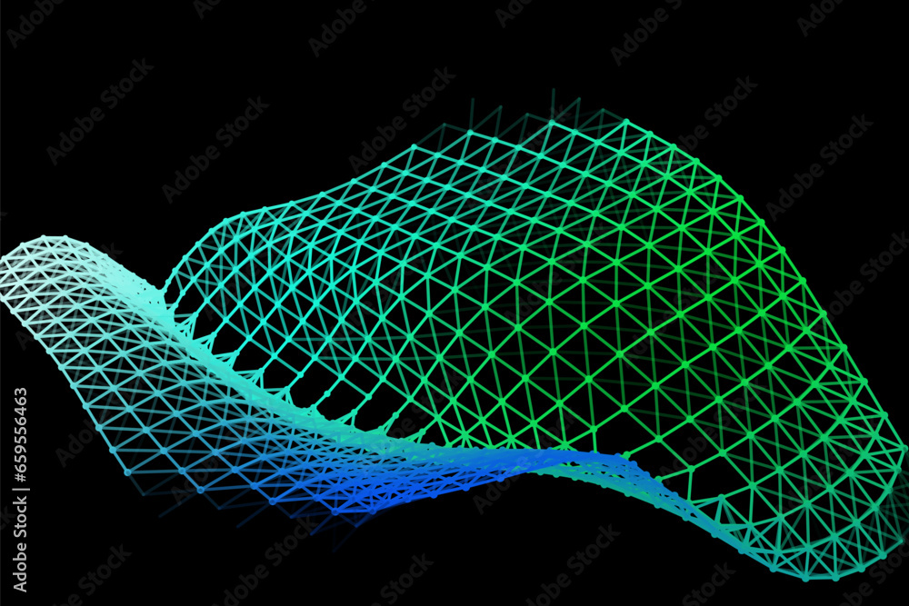 Vector background of net cells. Fish football sport syrface. Fluid flow on wind. Flag fabric data processing. #659556463