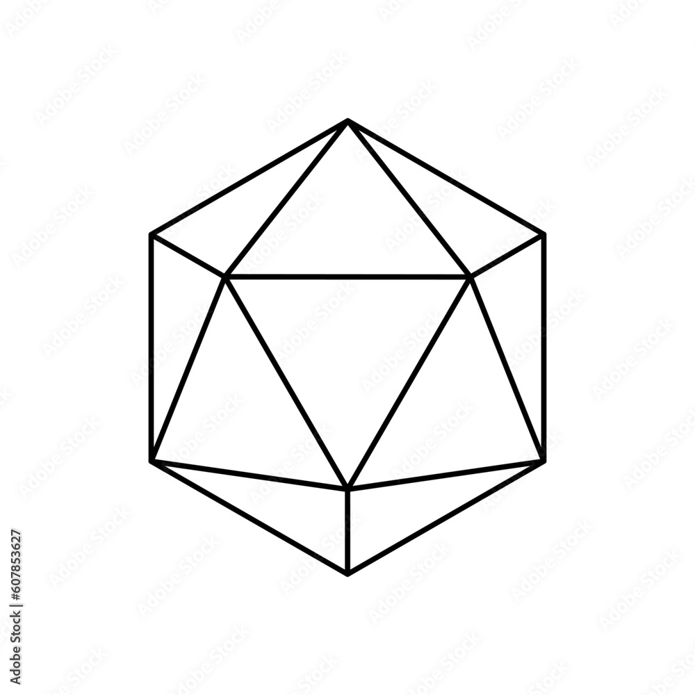 Vector black linear icosahedron for game, icon, package design, logo, mobile, ui, web, education. Outline. Geometric figures. #607853627