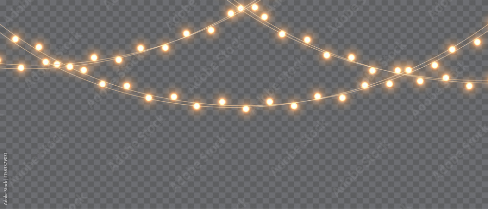 Vector Christmas lights on a transparent background. Christmas light PNG. Set of Christmas glowing garlands. For advertising invitations, web banners, postcards. Vector. Christmas decoration, LED lam #1563379031
