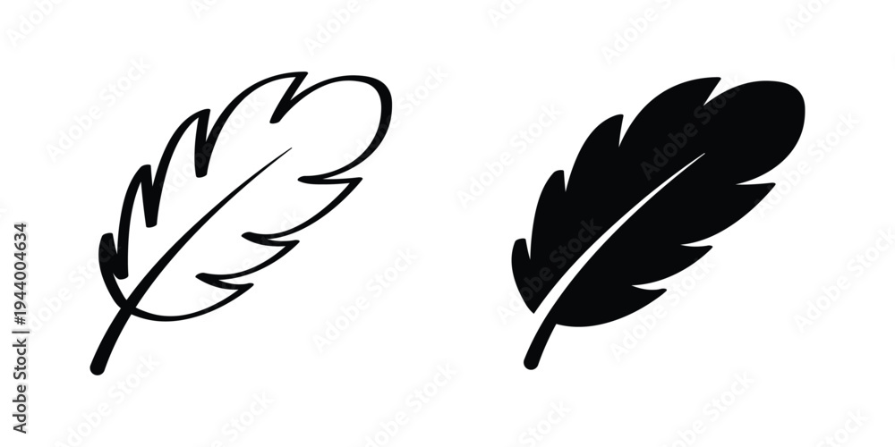 Vector feather, Bird feather symbol in line and solid style, Transparent PNG and illustration #1944004634