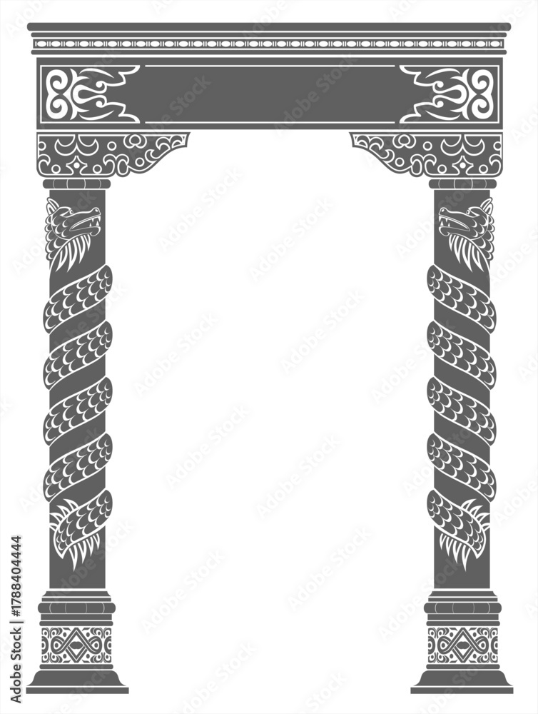 Vector graphics. Chinese arch with columns and dragons. #1788404444