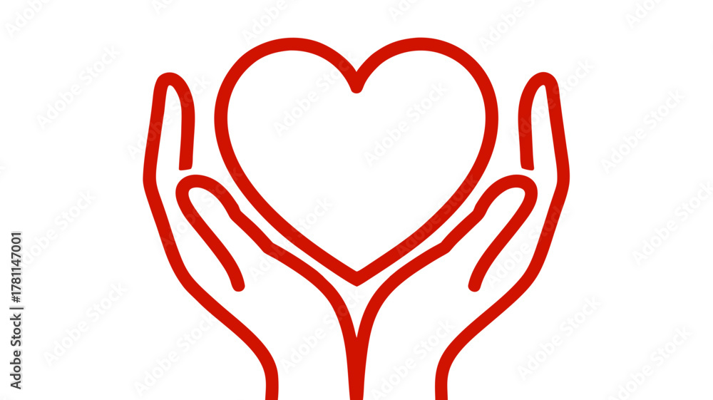 Vector icon two hands holding, embracing heart on transparent background, symbolizing care and love #1781147001
