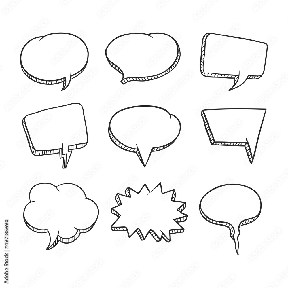 Vector illustration of hand drawn chat bubble element. Suitable for comic design, sketched poster, and infographic design material. Blank hand drawn talk bubble. #497185690