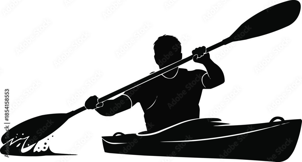 Vector illustration of Training kayak visual, Kayak Paddler Silhouette | Canoe Water Sports Vector #1854158553