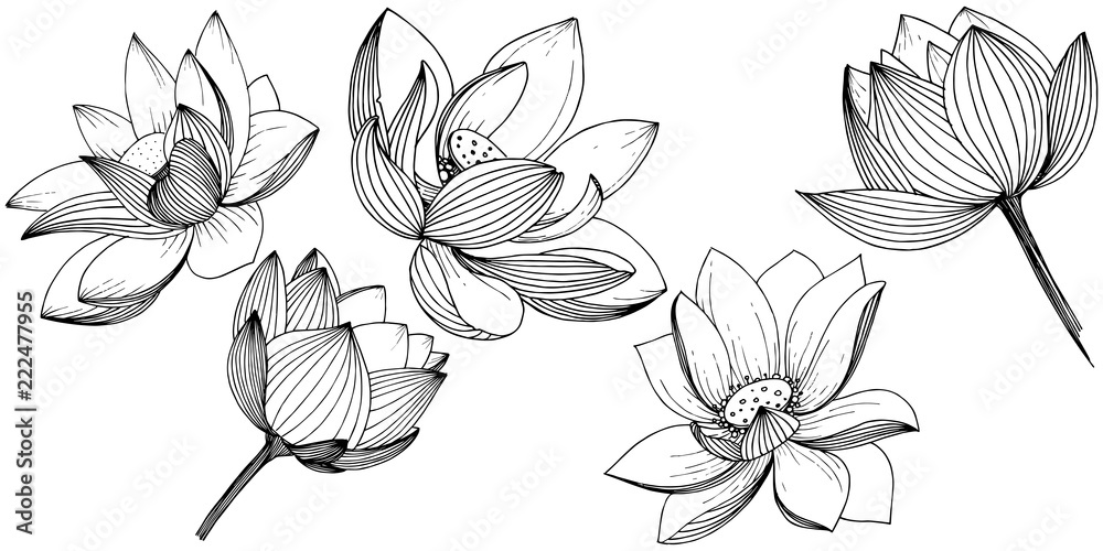 Vector lotus flower. Floral botanical flower. Isolated illustration element. Full name of the plant: lotus. Vector wildflower for background, texture, wrapper pattern, frame or border. #222477955