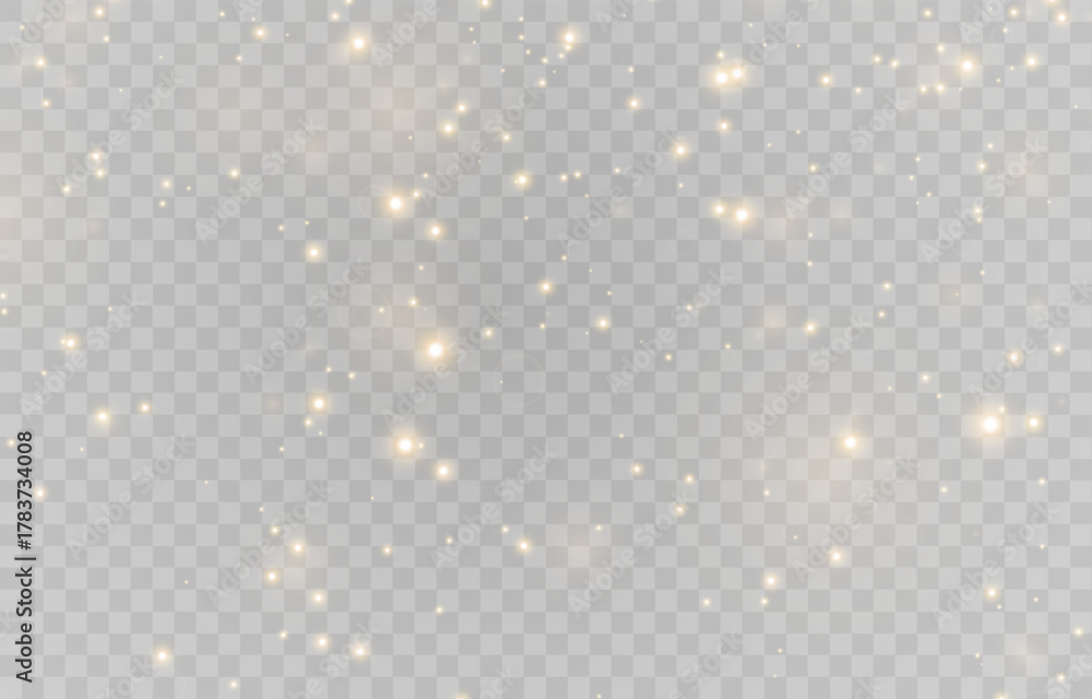 Vector magical light dust, dusty shine. Flying particles of light. Christmas light effect. Sparkling particles of fairy dust glow in transparent background. Vector illustration on png #1783734008