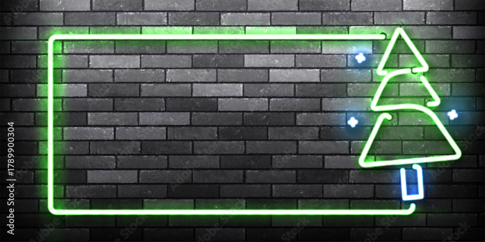 Vector neon frame with a Christmas tree isolated on wall background. Concept of Merry Christmas and Happy New Year. #1789900304