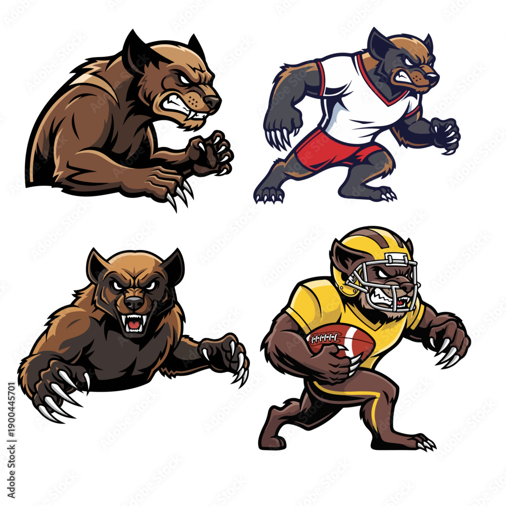 Vector Savage Wolverine Mascot Set with Sharp Claws and Athletic Football Persona #1900445701