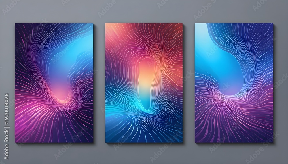 Vector Set of A4 Covers with Gradient Backgrounds, Curved Lines Creating 3D Optical Illusion, Minimalist Flat-Style Wallpaper Posters #1920018026