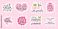 Vector set of cute pink motivational quote sticker for self care and mental health. Sticker pack with positive affirmation and kawaii characters on pastel background in flat design. #1958676746
