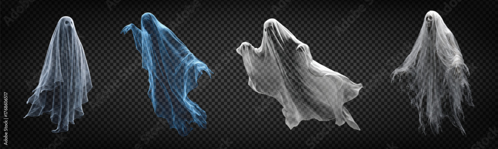 Vector set of ghosts isolated on transparent background. Concept of Happy Halloween holiday. #1768606517