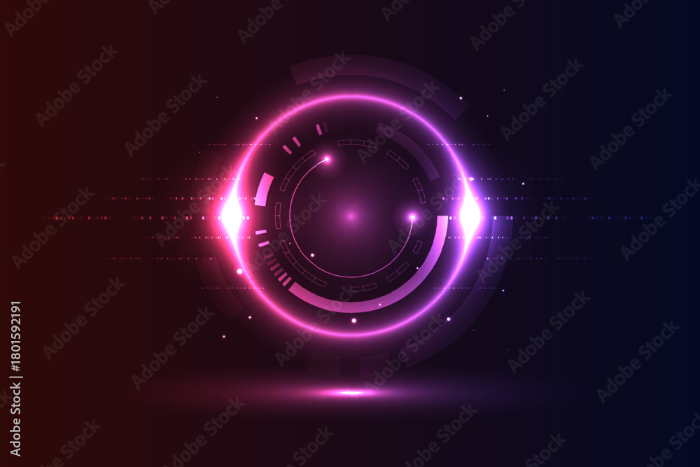 Vector Technology and AI Concept - Futuristic Digital Abstract Background with Glowing Cyber Rings Interface and Data Network #1801592191
