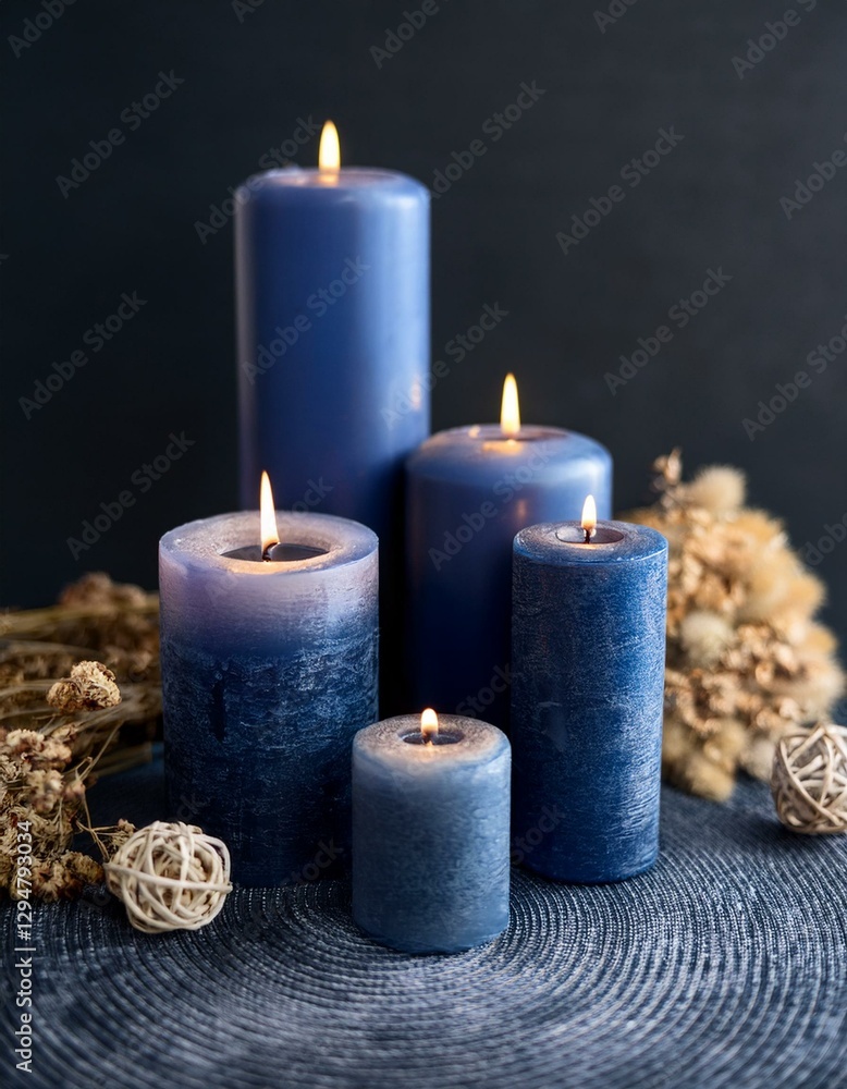 Velas encendidas de diferentes tamaños de color azul, decorativas #1294793034