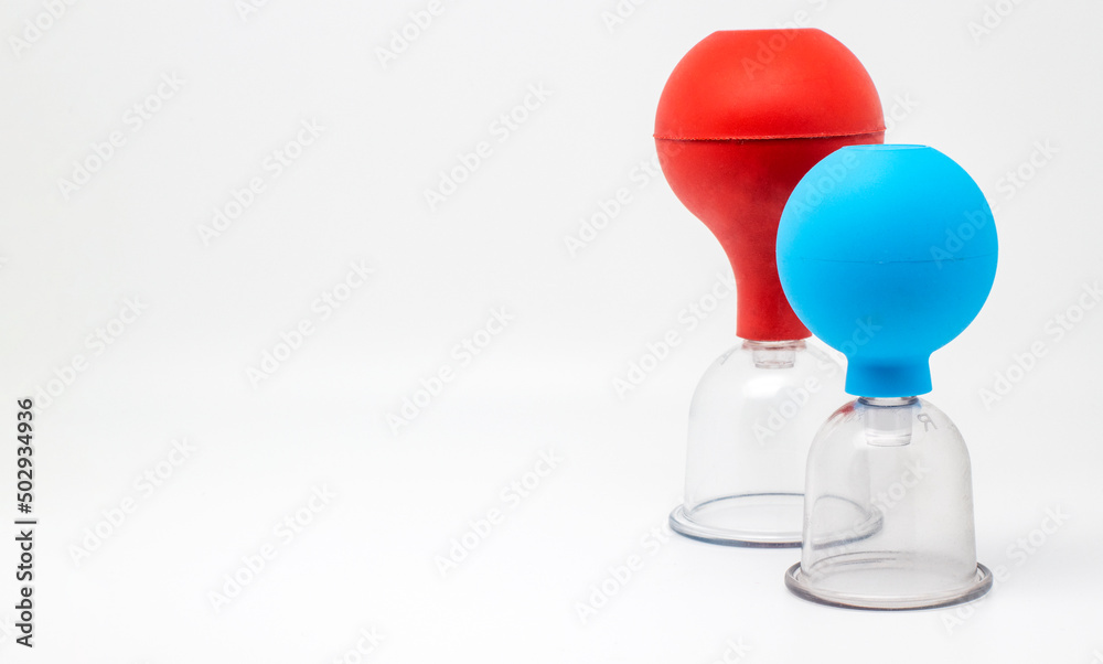 Ventosas para tratamiento de masaje sobre fondo de color blanco. Tratamiento cupping #502934936