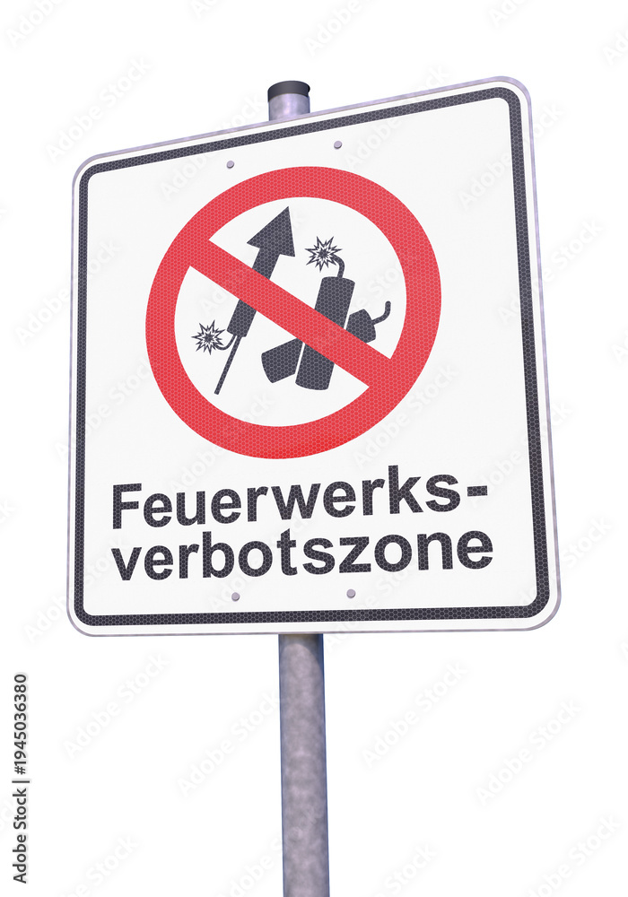 Verkehrszeichen - Verbot - Tafel - Feuerwerksverbotszone - Freisteller #1945036380