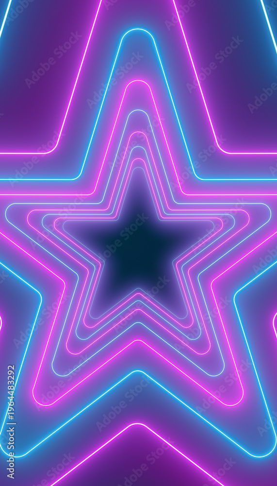 Vertical illustation many stars in neon blue and neon magenta on dark background - abstract background. #1964483292