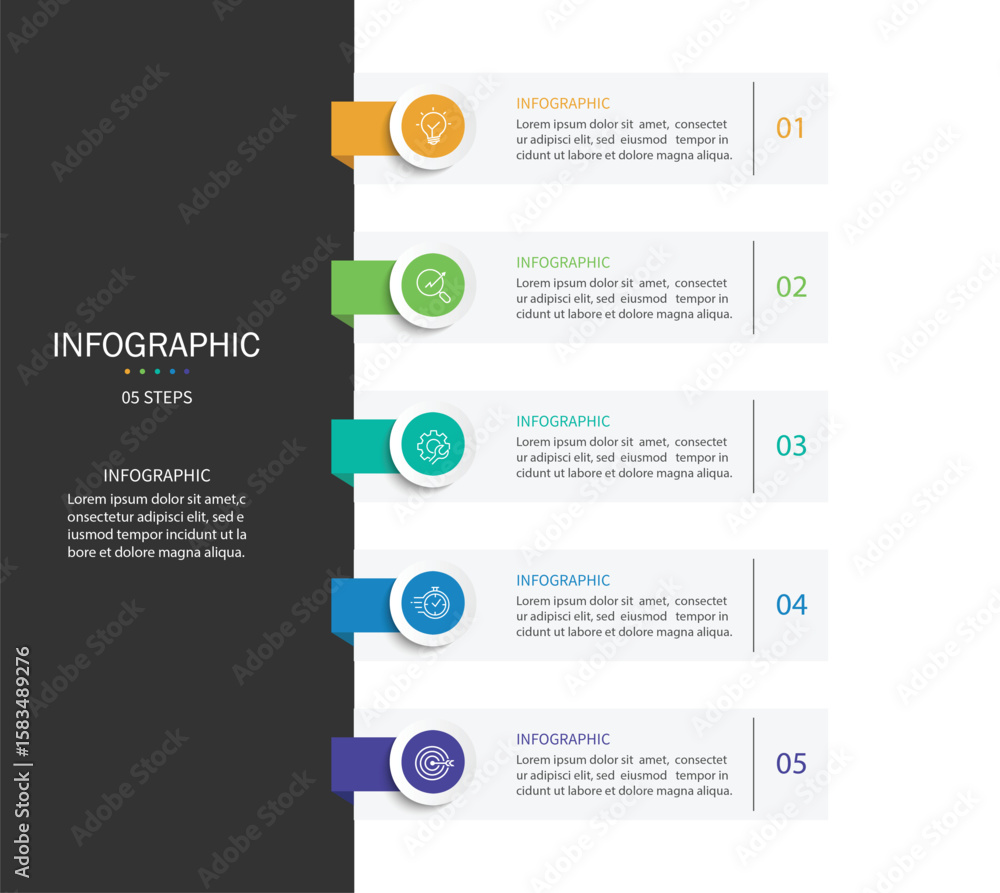 Vertical infographic timeline 5 steps template. Timeline, Business presentation. Vector illustration. #1583489276