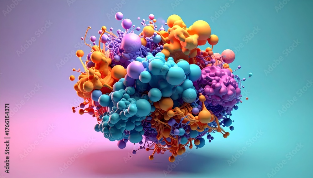 Vibrant Abstract Molecular Cluster of Interconnected Spheres and Forms #1766184371