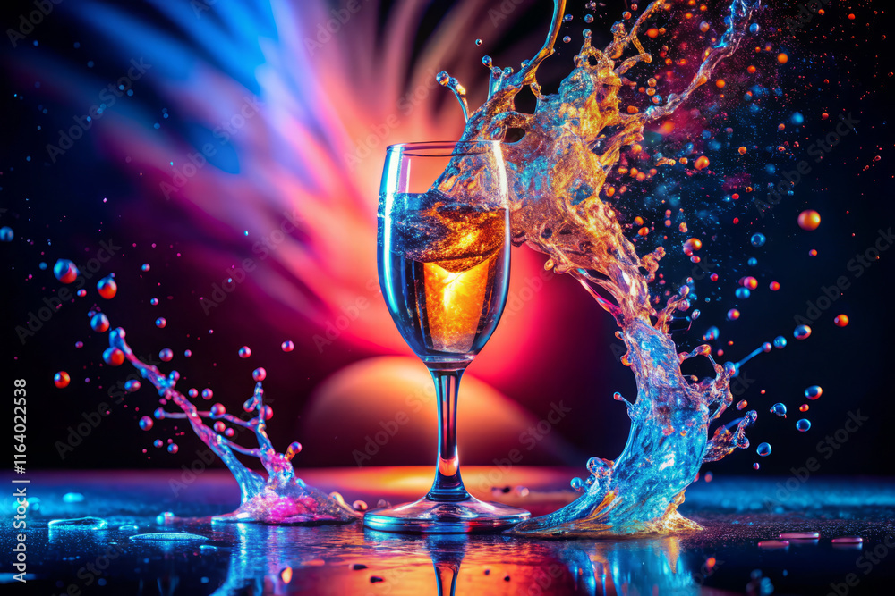 vibrant champagne splash with dynamic colors and stroboscopic effects #1164022538