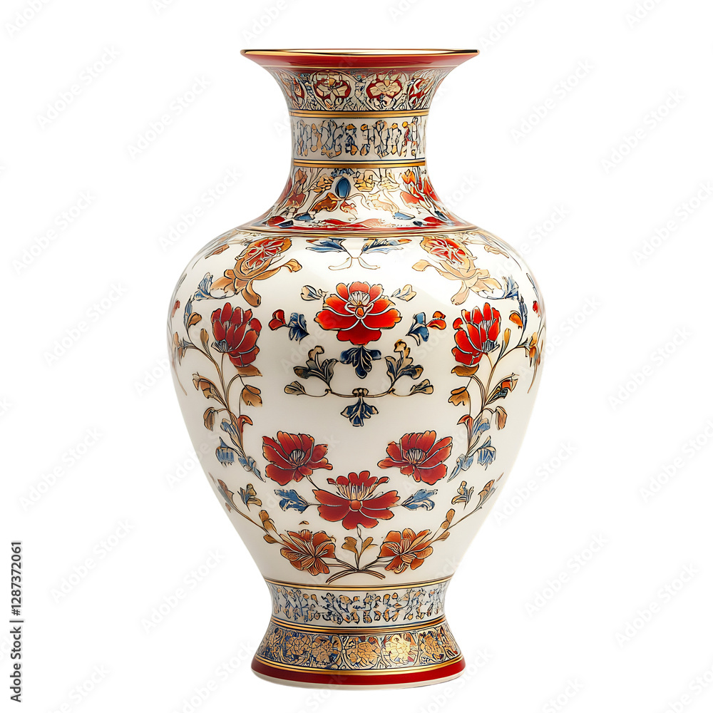 Vibrant Chinese Porcelain Vase with Floral Design Isolated on Transparent Background #1287372061