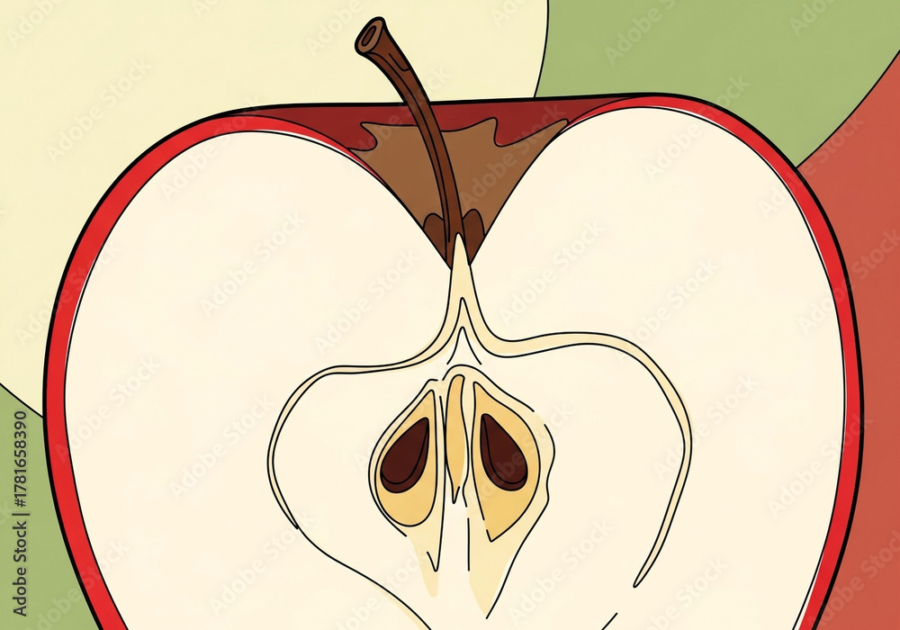 Vibrant close up of a stylized apple cross section revealing seeds and core detail, perfect for healthy eating or natural product branding. #1781658390