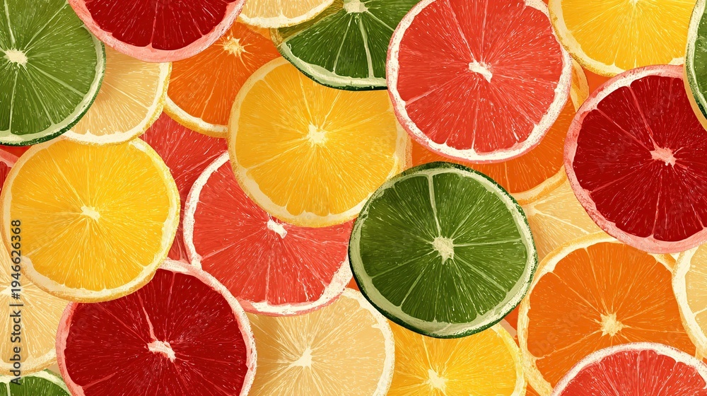 Vibrant colorful citrus fruit slices in seamless pattern #1946626368