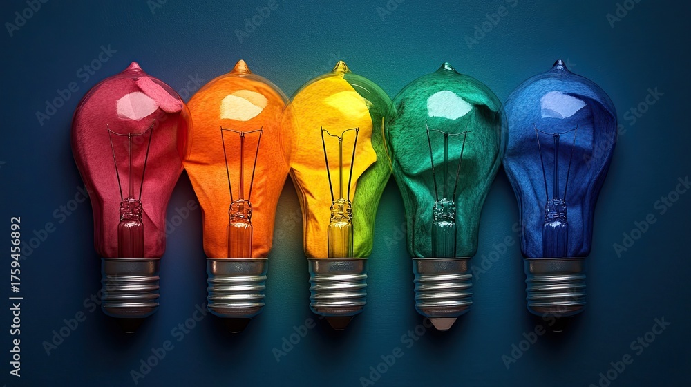 Vibrant colorful light bulbs symbolizing innovation, creativity, and ideas for business, technology, and marketing concepts #1759456892