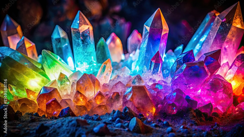 Vibrant Crystal Cluster Formation in Rock Caverns, crystals, rock formations, geological formations #1149588116
