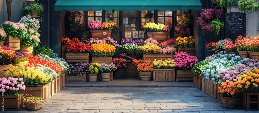 Vibrant Flowers Bloom at Charming Parisian Flower Shop #1220163591