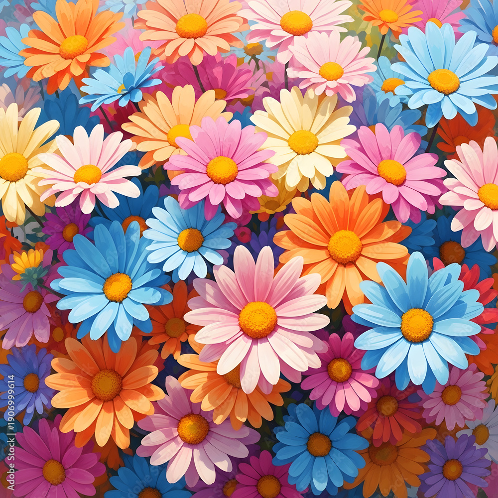 Vibrant flowers in full bloom Whisk daisies in a colorful floral arrangement #1906999614