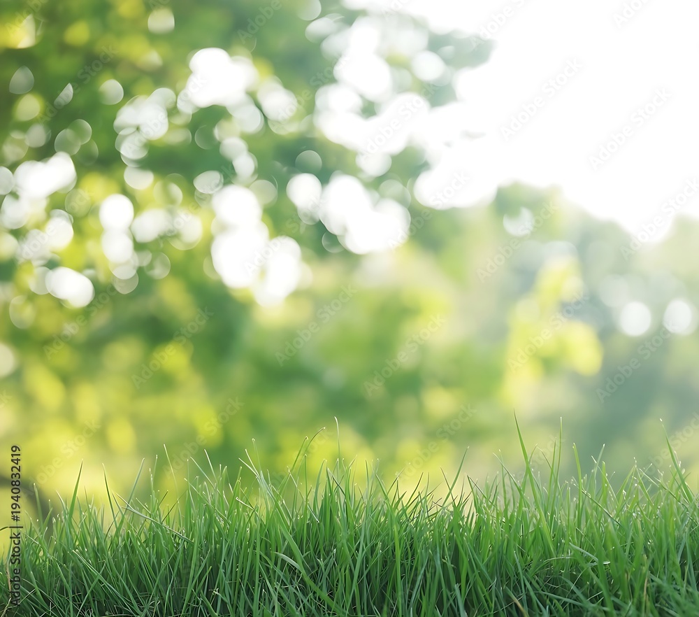 Vibrant green grass in sunny outdoor setting with blurred background #1940832419